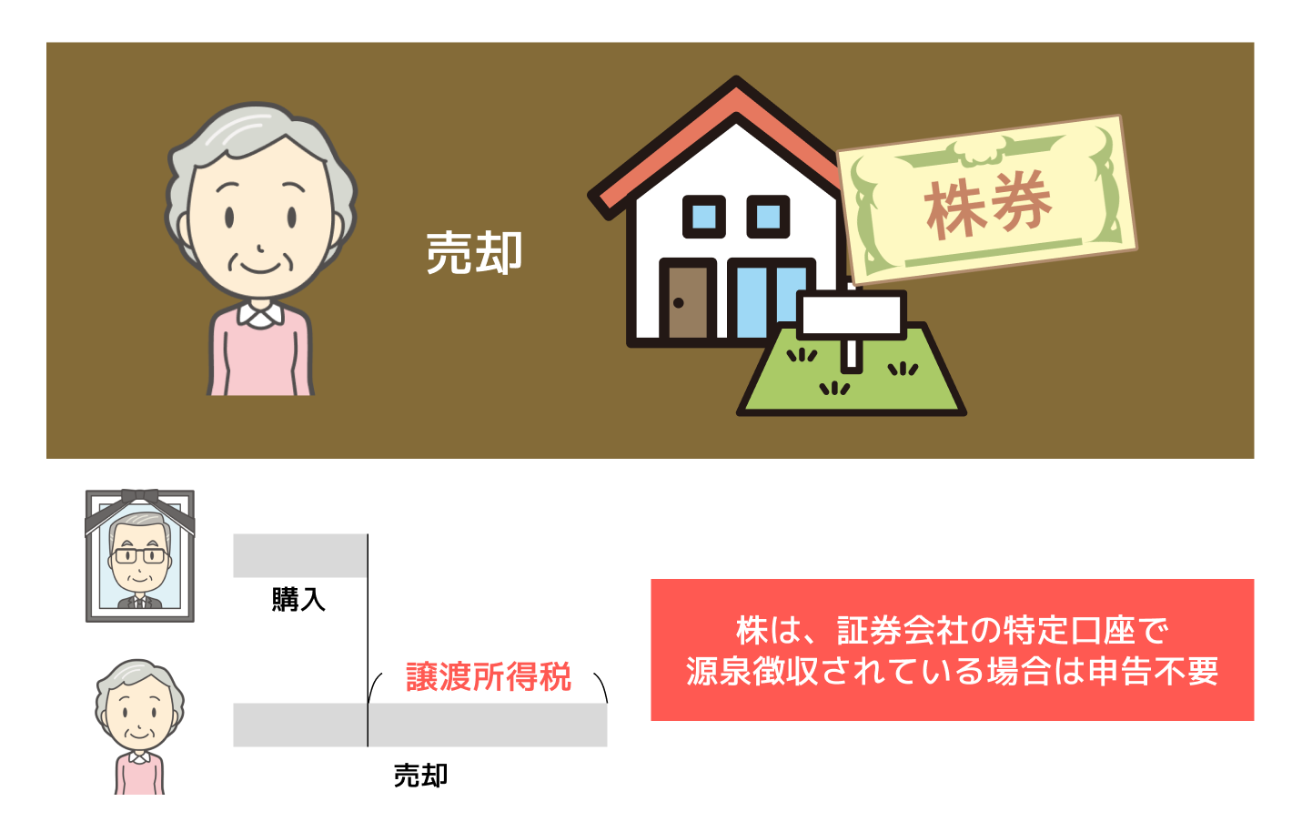 なお、株は、証券会社の特定口座で源泉徴収されている場合は申告不要です。
